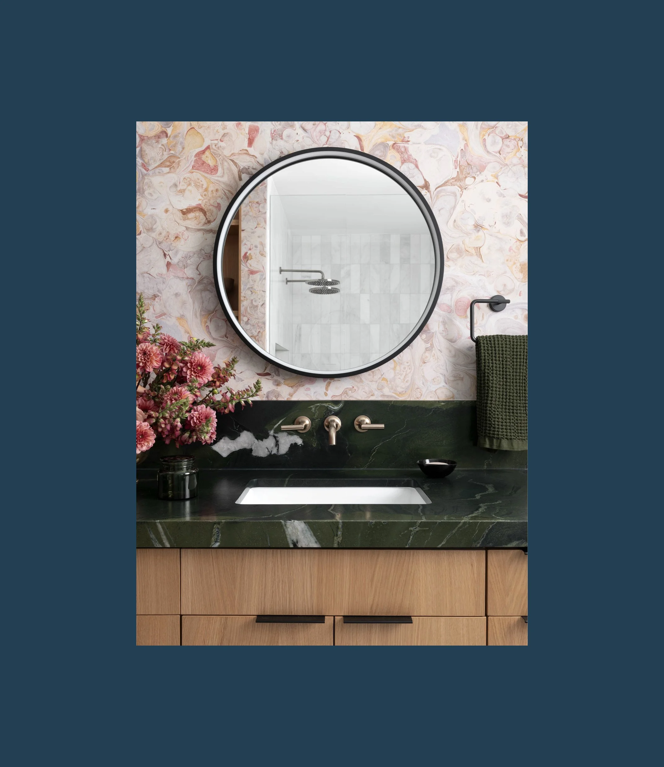 The property has the distinct sense of being in its own calm universe: two inward-facing structures separated by a pool courtyard, tucked behind a high fence and surrounded by live oaks. We tried to capture this serene feeling in our approach to outfitting the interior spaces: capturing light, warmth, texture, and using deep jewel tones to create a sense of tranquility.
